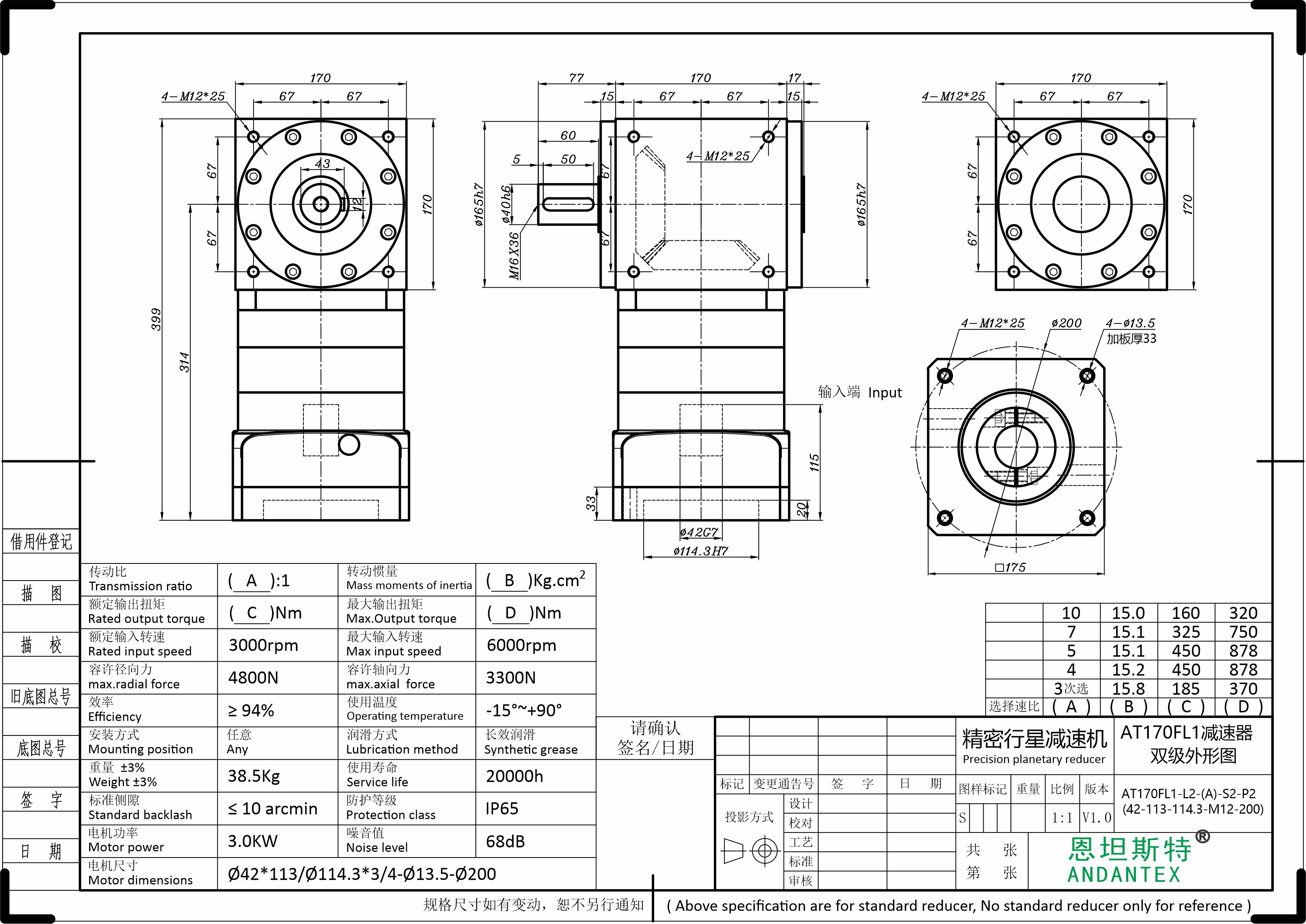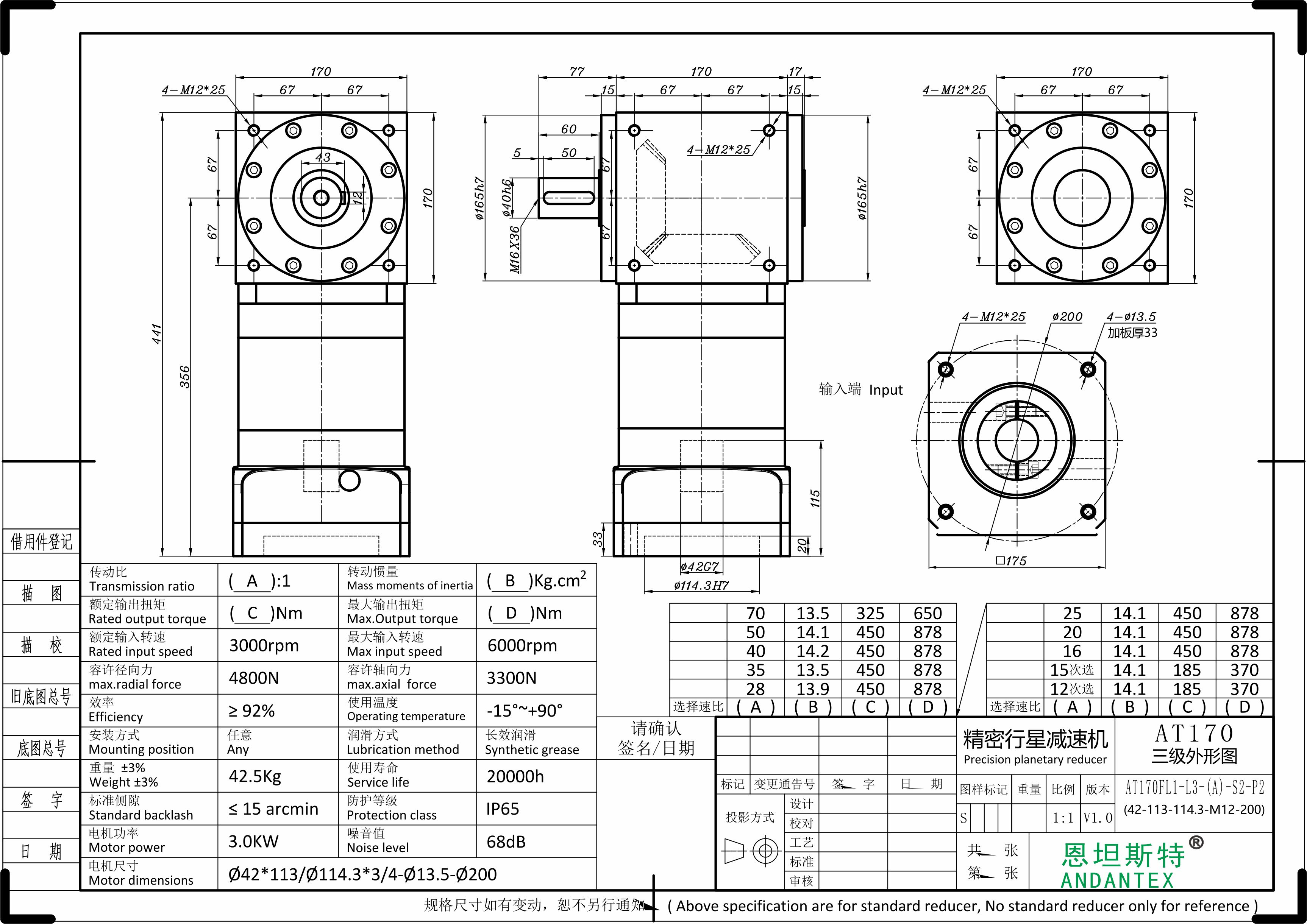 4、AT行星直角换向器有多种规格,有多种速比,选型范围大,输出形式多样,可满足多种场合的需要;