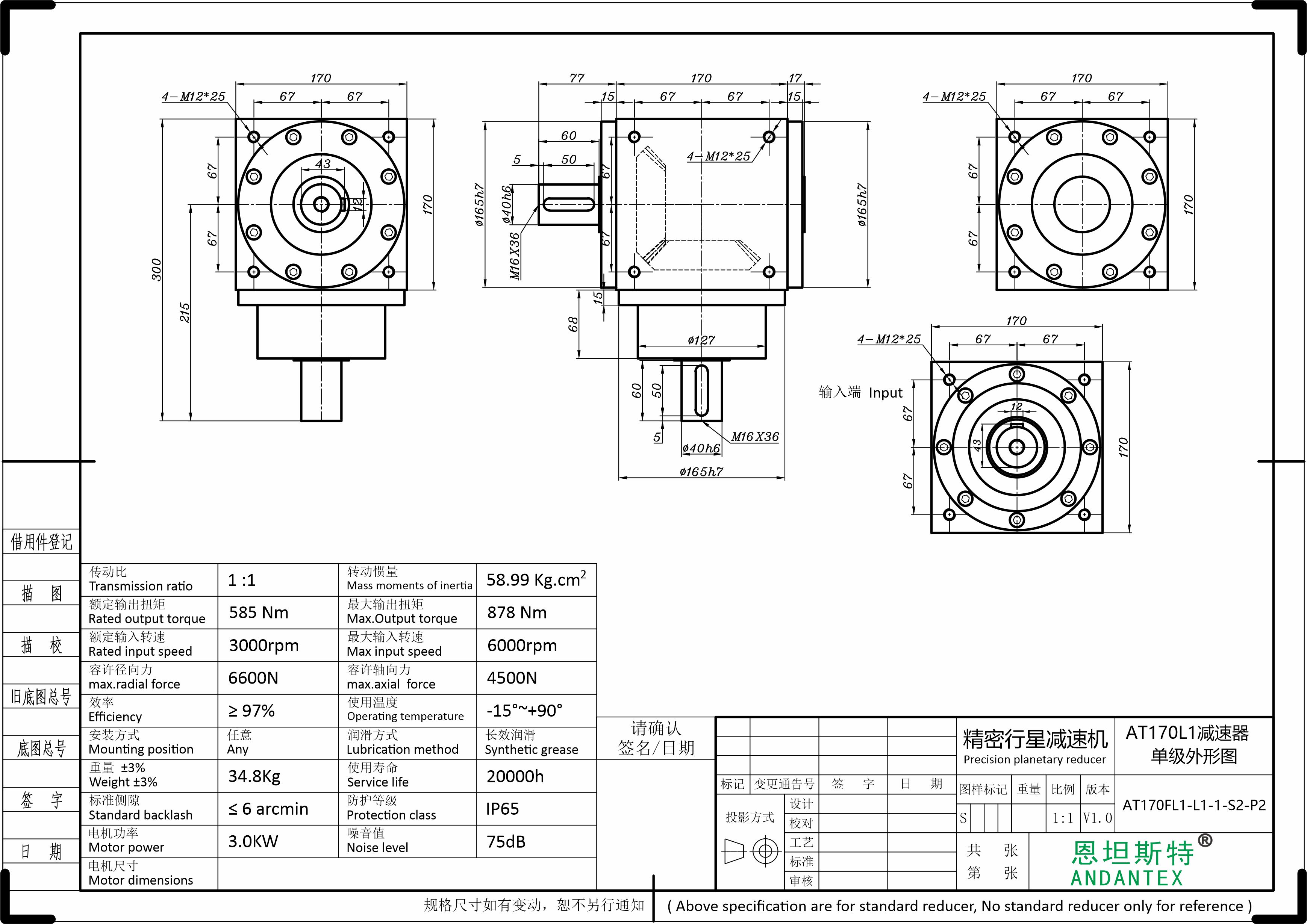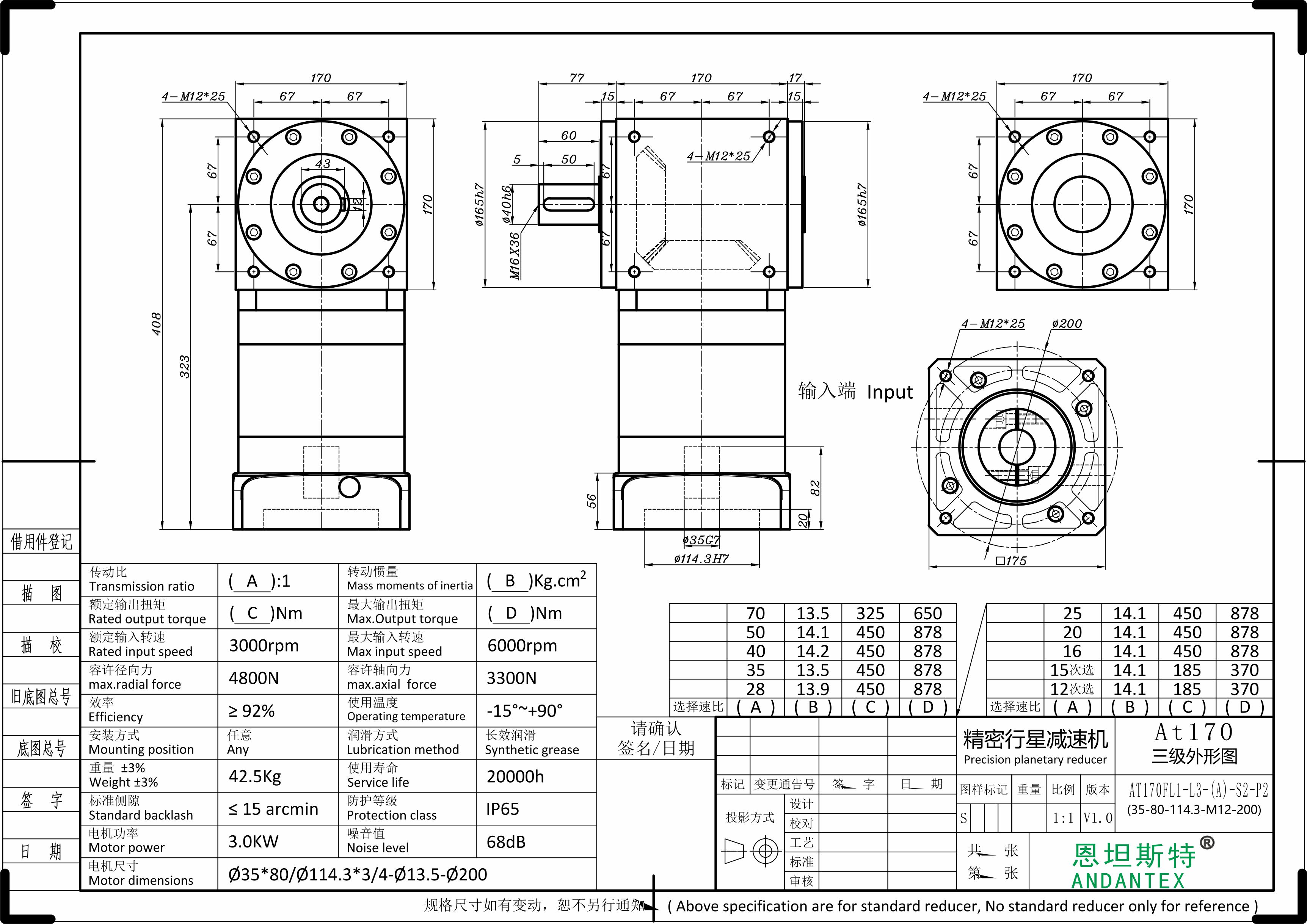 3、AT精密行星换向器,传动效率大于95%;
