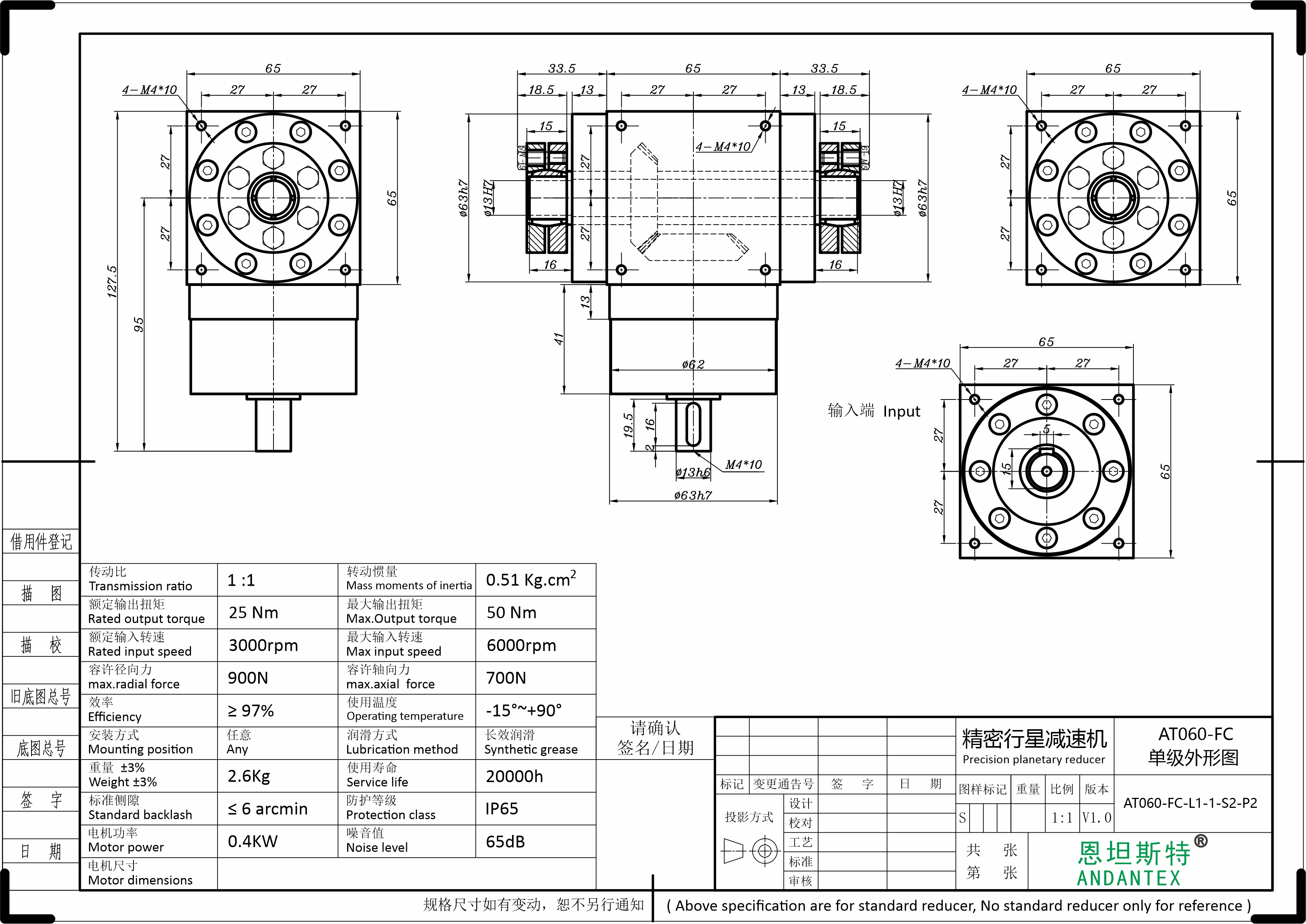 3、AT精密行星换向器,传动效率大于95%;