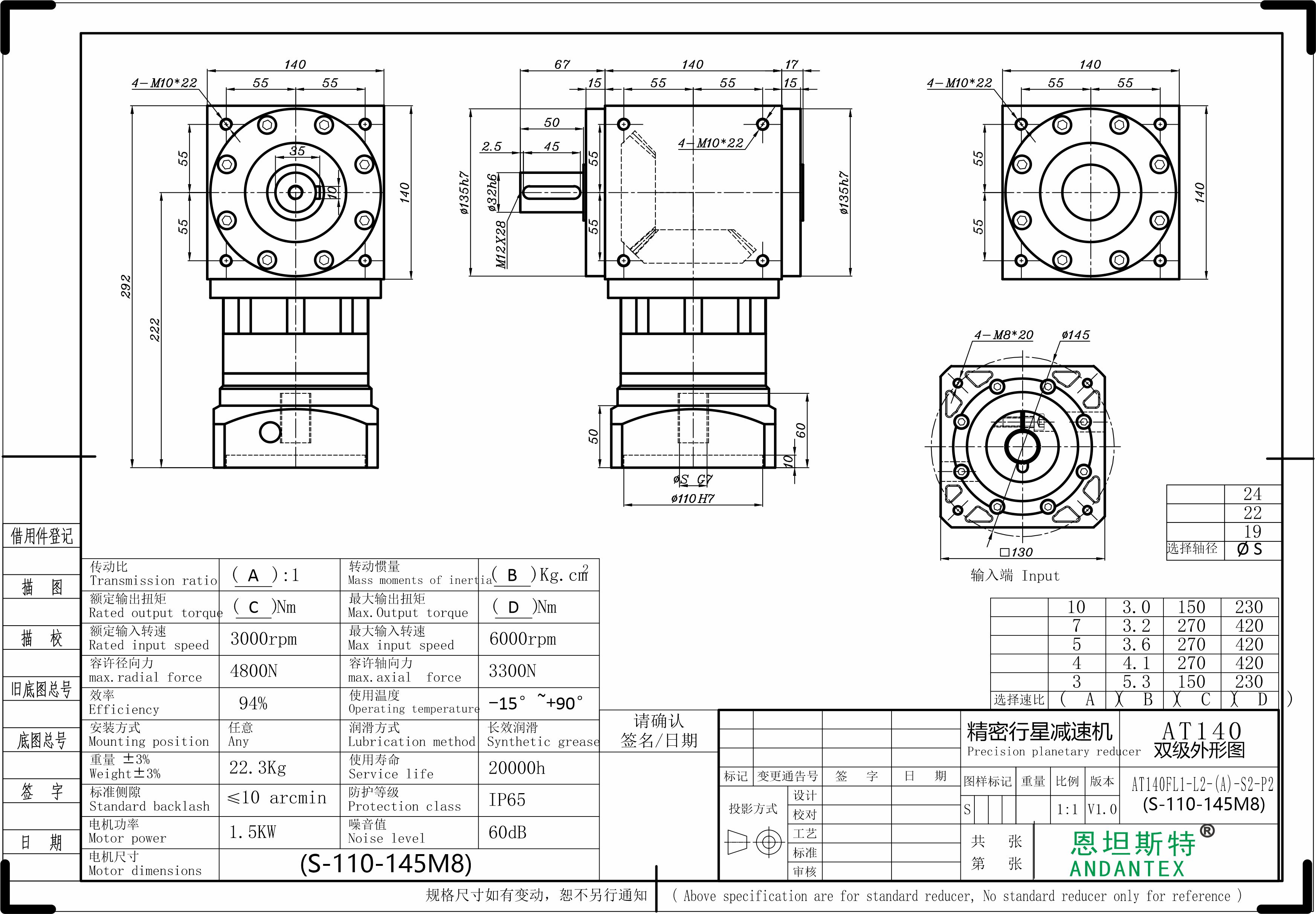 4、AT行星直角换向器有多种规格,有多种速比,选型范围大,输出形式多样,可满足多种场合的需要;